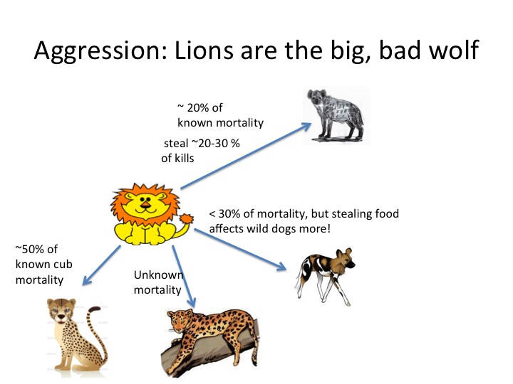 I recently gave a talk at the Arusha-based Interpretive Guide Society – a really cool group of people interested in learning more about the natural history of Tanzania’s places and animals. I’ve taken a few clips from the presentation that describe in a bit more detail how lions bully their competitors.