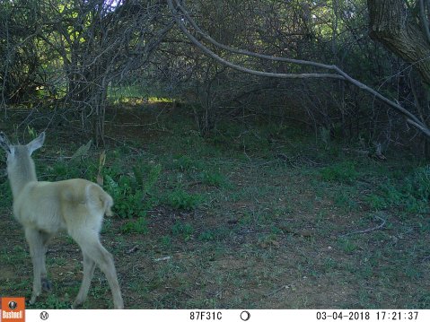 One of the camera traps was located on a well used animal track that lead from the bush down to the river. The rains had not thus far been kind in that part of Africa and the bush was rather dry with little standing water so I was confident the track would offer some interesting images. As expected I had lots of images of vervet monkey, warthog, impala, nyala and waterbuck. Imagine my surprise then when I scrolled through 20 or so images of a small herd of waterbuck does with young to find this fluffy looking white thing that looked more like a sheep!